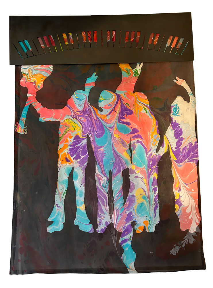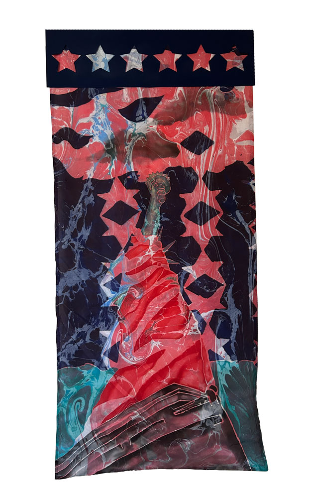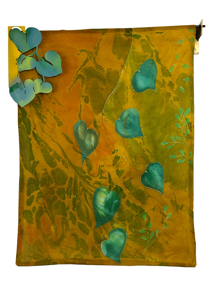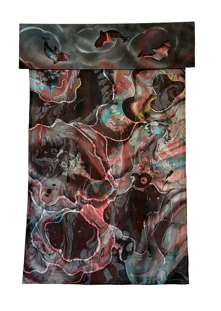Hand Painted Marbleized Silk and Steel 4′ x 5′ 7″